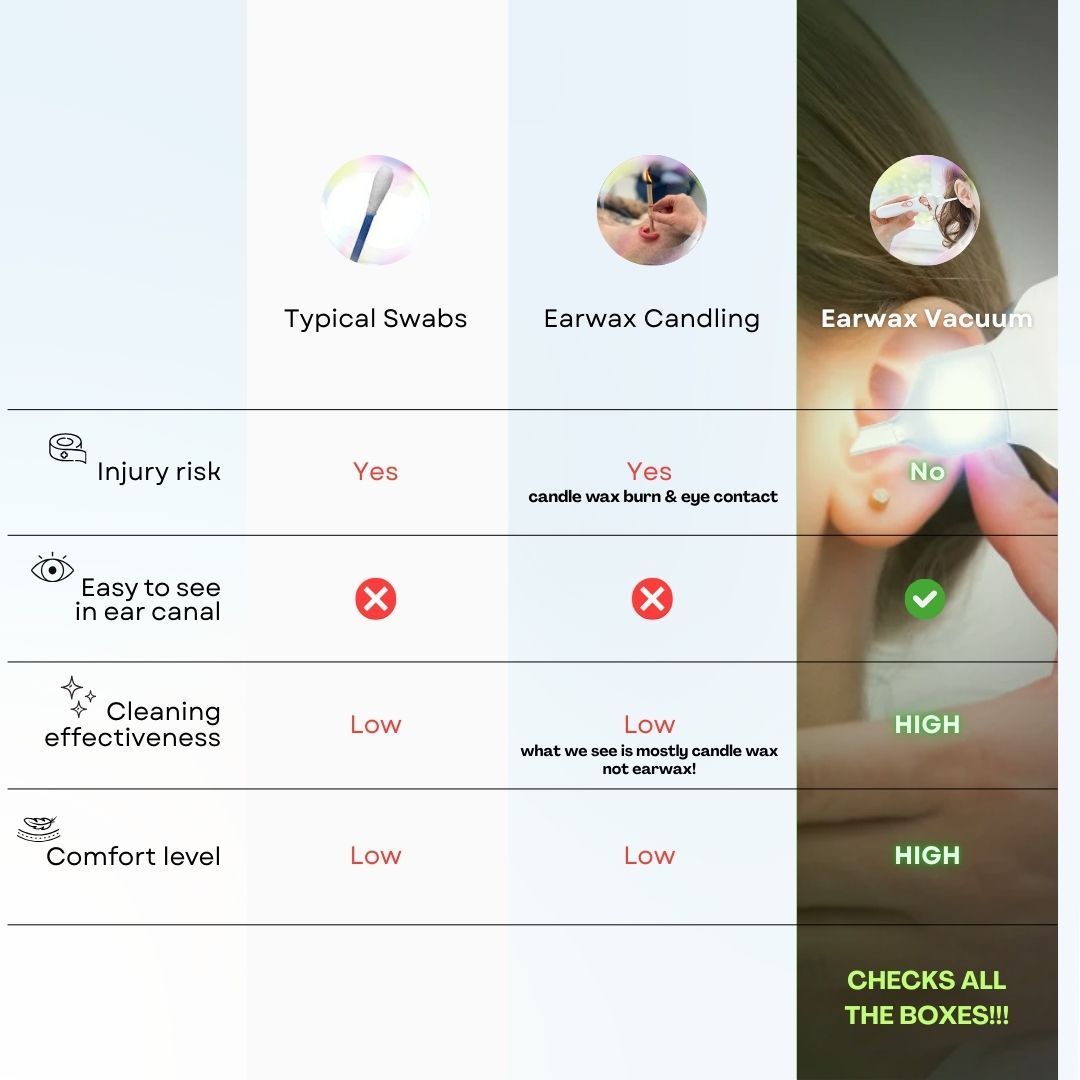 3 times safer and 5 times more efficient, unlike traditional cotton swaps or scratchy fingers that are just pushing earwax around.